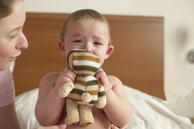“看見生人就哭,看見毛絨玩具也不敢動。”